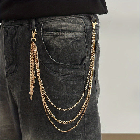 A Casual And Minimalist Style Cross Three-Layer Chain Pendant Pants Chain, Featuring a Trendy Retro Design Suitable for Everyday Parties, Making It a Versatile Gift for Men