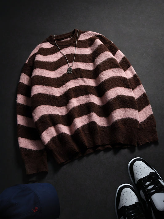 Autumn/Winter New Arrival Fabric Men's Unisex Style Long Sleeve Crew Neck Striped Drop Shoulder High Street Style Pullover Knit Top