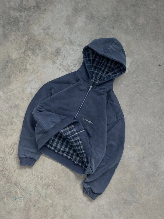 American Street Retro Reversible Plaid Fashion Zipper Hoodie Men New Harajuku Y2K Heavy Wash Casual Street Sweatshirts Women