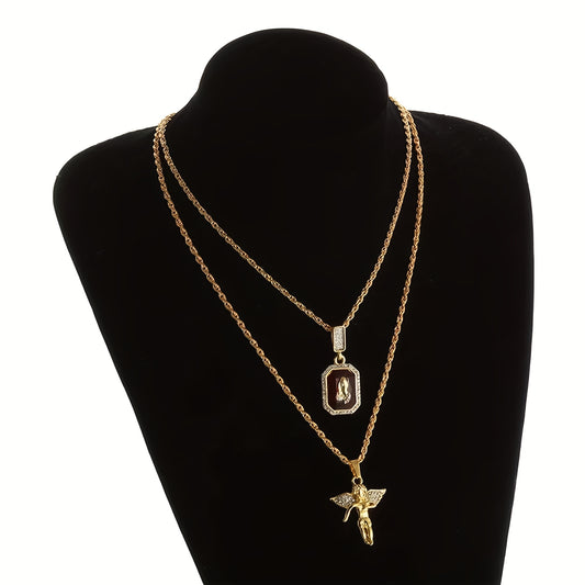 A Men'S Hip-Hop Double-Layer Pendant Necklace That Can Be Gifted to Fathers, Partners, Boyfriends, Brothers, Or Sons; Suitable for Holidays, Father'S Day, Valentine'S Day, And Anniversaries