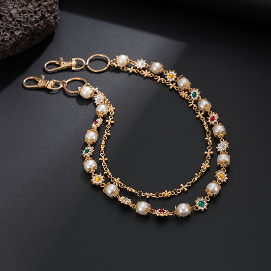 1pc Denim Chain Small Flower Chain Hip-Hop Niche Colorful Rhinestones Spliced Waist Chain Pendant Streetwear
